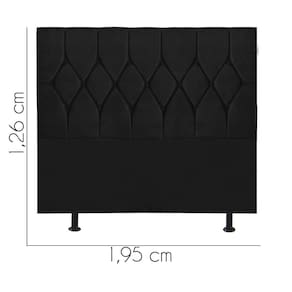 - Largura: 195 cm; - Altura: 126 cm; - Profundidade: 11 cm; - Produto estofado; - Produzido em Madeira de Pinus e Eucalipto; - Pés em pvc.