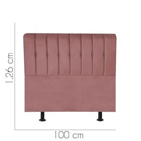 - Largura: 100 cm; - Altura: 126 cm; - Profundidade: 11 cm; - Produto estofado; - Produzido em Madeira de Pinus e Eucalipto; - Pés em pvc.