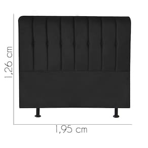 - Largura: 195 cm; - Altura: 126 cm; - Profundidade: 11 cm; - Produto estofado; - Produzido em Madeira de Pinus e Eucalipto; - Pés em pvc.