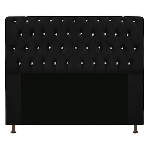 Cabeceira Estofada Lady Com Strass 160 Cm Queen Size Suede - Doce Sonho Móveis Preto