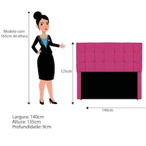 Cabeceira Estofada Manchester 140 Cm Casal Suede - Doce Sonho Móveis Cor Pink
