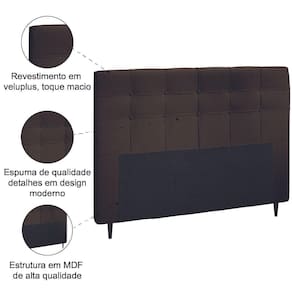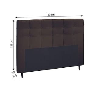 A Esplanada Móveis se responsabiliza pela dos produtos adquiridos até a porta de entrada ou portaria do indicado, se a portaria do condomínio permitir, as são efetuadas no piso térreo e é de responsabilidade do cliente a locomoção da mercadoria até seu apartamento ou casa. Confira as dimensões do produto e certifique-se de que estão adequadas aos elevadores, portas e corredores do da . Não fazemos a montagem, desmontagem do produto e/ou portas e janelas, pela escada ou içamento pelo lado de fora do prédio. Não está incluso no de o deslocamento até o interior do apartamento, com ou sem elevador, ou deslocamento em locais de difícil acesso como escadarias. MEDIDAS:: [ A ] = 123 cm / 110 cm (Sem pés) [ L ] = 160 cm [ P ] = 11 cm | ALTURA DOS PÉS:: 13 cm | PESO:: 12,60 kg | MODELO:: Cabeceira Estofada Para Cama Box Casal Queen Hanover 1,60m Suede | MARCA:: Dobuê | ESTRUTURA:: MDF | ESPESSURA DO MATERIAL DA ESTRUTURA:: 15, 18 e 20mm | ACABAMENTO:: Suede veluplus | MATERIAL DO ESTOFADO:: Espuma de qualidade | TECIDO:: Veloplus | REVESTIMENTO:: Veluplus | PÉS:: 2 | MATERIAL DOS PÉS:: Plástico | ADAPTÁVEL PARA BOX DE:: Casal Queen | SISTEMA DE MONTAGEM:: Fixação no colchão com sistema macho e fêmea | ITENS INCLUSOS:: 1 Cabeceira e Manual de Montagem | GARANTIA:: 3 meses pelo fabricante | AVISO:: A Esplanada Móveis se responsabiliza pela dos produtos adquiridos até a porta de entrada ou portaria do indicado, se a portaria do condomínio permitir, as são efetuadas no piso térreo e é de responsabilidade do cliente. | Altura: 123 | Largura: 160 | Profundidade: 11 | Quantidade de caixas de embalagem: 1 | Tamanhos de cama: queen | Cor: Chocolate