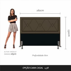 Materiais de Fabricação: - Estrutura: Madeira Eucalipto - Revestimento: Suede - Tonalidade do tecido : Suede Marrom - Pés: Polietileno - Medida para cama:1,58 cm - Acompanha kit frame - Estruturado com material de altíssima qualidade, evitando fungos e mofo.