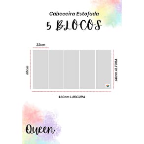 Item: CABECEIRA ESTOFADA QUEEN NÃO É SEGREDO 5 BLOCOS LINHO CINZA 160X60