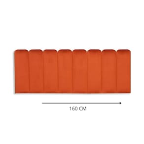 DESCRIÇÃO TÉCNICA Atura: 60 cm Profundidade: 3 cm Comprimento: 160 cm (20 cm POR MÓDULO; A cama Queen leva 08 módulos) Materiais: - Madeira de reflorestamento; - Espuma D28 (hipoalergênica); - Veludo terracota.
