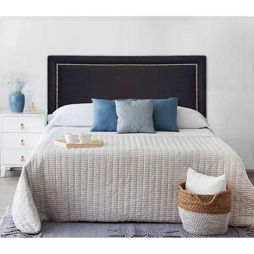 Cabeceira Estofada Reta Luxo com Tachas - Casal - PRETO