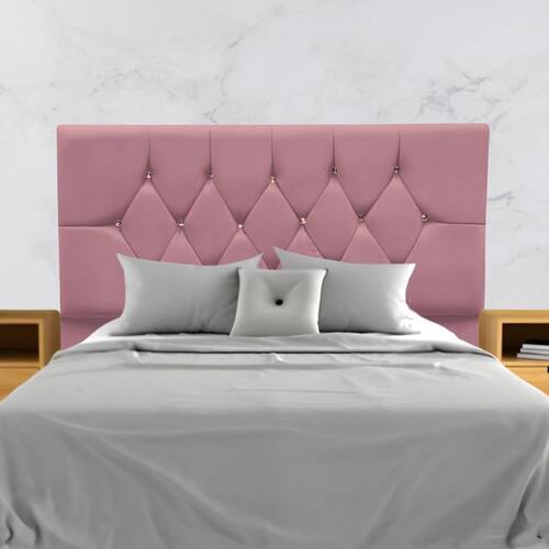 Cabeceira Estofada em Suede com Botonê de Cristal – Delicadeza e Brilho para o Seu Quarto