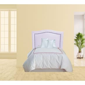 Cabeceira Estofada Solteiro Branca Línea em Material Sintético Tacha Fumê Cabeceira Estofada Solteiro Branca Línea em Material Sintético Tacha Fumê