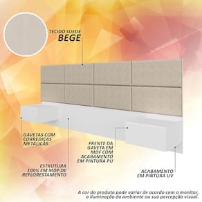 A Cabeceira Honduras para cama casal tem um design clean e acabamento de qualidade, trazendo sofisticação e aconchego ao seu quarto.