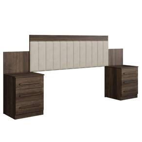Cabeceira Extensiva Estofada C/ 2 Mesas De Cabeceira Império Imbuia Cabeceira Imperio Estofada: Flexibilidade e Modernidade A Cabeceira Imperio Estofada e produzida em chapa de 15 mm, garantindo robustez e durabilidade. Ela inclui 2 mesas de cabeceira e 6 gavetas com corredicas telescopicas, oferecendo bastante espaco para armazenamento. Com montagem dupla, e compativel com colchoes de 140 cm e 160 cm, sem necessidade de parafusar na parede. O acabamento em tecido linho adiciona um toque de modernidade e flexibilidade ao seu ambiente.