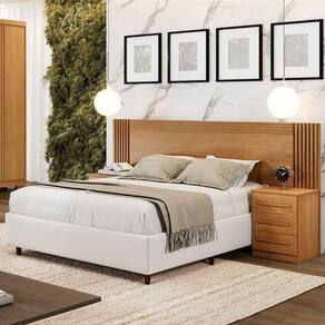 A Cabeceira Valencia e produzido todo em chapa de 15 mm com painel ripado, contem 2 mesas de cabeceira e 6 gavetas com corredicas telescopicas com bastante espaco, alem de ter montagem dupla nas medidas para colchao de 138 cm e 158 cm, nao necessita parafusar na parede dando flexibilidade no seu ambiente. Sua fabricacao utiliza a linha mdp perffect, que une a sustentabilidade a inovacao tecnologica, proporcionando durabilidade e facil limpeza; nosso revestimento reproduz os veios naturais da madeira que podem ser sentidos pelo tato, inspirando sofisticacao ao mobiliario. Pelo revestimento ser termofundido com alta pressao e temperatura apresenta maior compactacao das camadas o que elimina a possibilidade de empenamento do painel; superior resistencia de fixacao do parafuso o que aumenta a vida util do movel e alem disso atende aos testes definidos em normas, conferindo resistencia a: abrasao; riscos; agentes manchadores; aderencia. Conta com boa resistencia, e facil de limpar e e ecologicamente correto, pois utiliza madeira de reflorestamento, evitando o desmatamento.