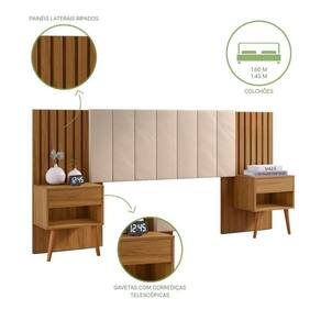 Cabeceira Extensivel Queen Estofada Com Mesa De Cabeceira