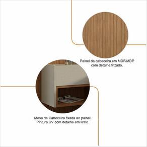 Material da cabeceira: MDP/MDF 15mm com acabamento do painel frisado;