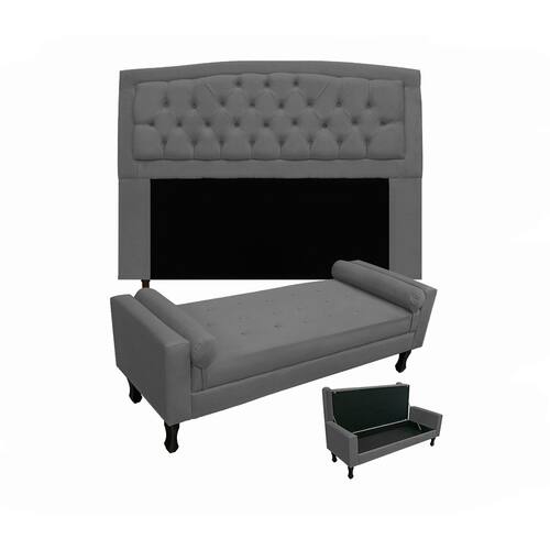 Cabeceira Geovana + Calçadeira Fênix Para Quarto Casal 140cm Suede Cinza - LM DECOR