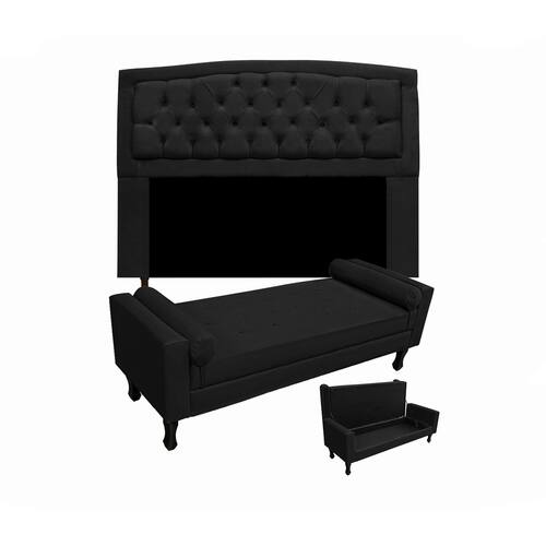 Cabeceira Geovana + Calçadeira Fênix Para Quarto Solteiro 90cm Suede Preto - LM DECOR