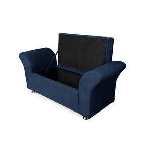 Cabeceira Geovana e Calçadeira Veneza Baú Casal 140cm Suede Azul Marinho - LM DECOR