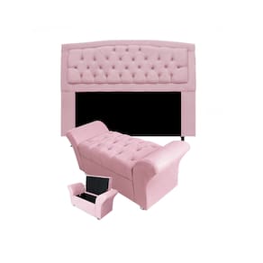 Cabeceira Geovana e Calçadeira Veneza Estofada Casal 140cm Suede Rosa Bebe - LM DECOR