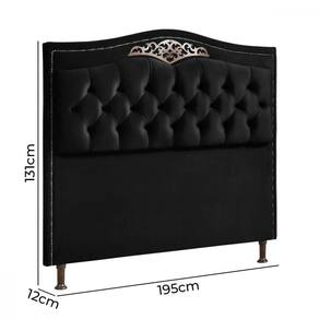 Cabeceira Holanda 1,95 Para Cama Box King Size - Veludo Preto Com lindo design retro essa linha apresenta uma serie de cabeceiras com medidas variadas e cores atuais que sao boas escolhas para quem busca renovar a decoracao do quarto, sem deixar de lado o conforto e a praticidade. Resistente e confeccionada com materiais de alta qualidade, suas medidas sao indicadas para o uso com base box e colchao de 0,90 ate 1,95 vendidos separadamente. Combine-a com travesseiros e almofadas de sua preferencia e torne sua decoracao ainda mais charmosa e aconchegante. Caracteristicas do Produto Material da Estrutura: Madeira de eucalipto. Material e Densidade da Espuma: Poliuretano sem carga. Revestimento: Veludo Possui Pes: Sim Tipo de Pe: Pe de PVC de 13 cm Possui Frame: Sim Tipo de Frame: Frame de metal #8203; Diferenciais: Espuma de alta qualidade Design retro Costura resistente Montagem Facil Estrutura resistente Aplique de chapa de 3 mm decorativa Tachinha fume decorativa