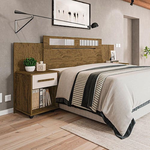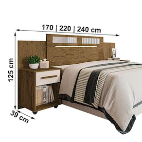 CARACTERISTICAS Altura: 125 cm Largura: Solteiro – 170 cm | Casal – 220 cm | Queen – 240 cm Gavetas: 01 por Mesa de Cabeceira Puxador: Externo Pés: Sim Material: Misto (MDP/MDF) Acabamento: Pintura Necessita Montagem: Sim Ambiente: Quarto Itens Inclusos: 1 Cabeceira e 1 Manual de Instalação Recomendações de Uso, Manutenção e Limpeza: Limpeza deve ser feita com pano seco.
