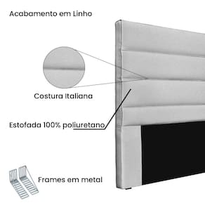 Cabeceira La Italiana, no seu nome já diz tudo! Traz em suas linhas horizontais toda em costura italiana o moderno clássico aconchegante. Produzida com muita sofisticação em Madeira de reflorestamento e Estofada 100% em espuma D23. Altura dos Pés: 1 Ambiente Principal: Quarto Cabeceira Estofada: Sim Cor: Grigio Cor do Produto: Grigio Escala de Brilho: Semi-Fosco Extensível: Não Fixação Box: Sim Fixação na Parede: Não Itens Inclusos: 1 Cabeceira, Kit Ferragens e Manual de Montagem Largura do Colchão Indicado: 195 Linha ou Coleção: La Italiana Manual de Montagem e Instalação: https://cdn2.madeiramadeira.com.br/atributo/spezzia-decor/1263849-978780-963153-manual-cabeceira.pdf Material dos Pés: Plástico Material Principal: Madeira Maciça Necessita Montagem: Não Origem do Produto: Nacional Peso: 12.1 Possui Espelho: Não Possui Possui Mesa de Cabeceira: Não Possui Pés: 02 Possui Rodízio: Não Possui Vidro: Não Recomendações de Uso, Manutenção e Limpeza: Limpeza: Utilize pano levemente úmido Sapatas Niveladoras: Sim Tipo de Colchão: King Tipo de Madeira Maciça: Eucalipto