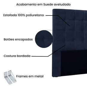 - 1 Cabeceira, e acessórios de montagem. Produto Montado: Não Altura dos Pés: 1 cm Altura Máxima dos Pés: 1.0000 Ambiente Principal: Quarto Cabeceira Estofada: Sim codigo_ean: 7909903107720 Complexidade da Montagem: Baixa: pode ser montado por uma pessoa sozinha Cor: Azul Marinho Cor do Produto: Azul Marinho Escala de Brilho: Fosco Extensível: Não Fixação Box: Sim Fixação na Parede: Não Itens Inclusos: 1 Cabeceira, Kit Ferragens e Manual de Montagem Largura do Colchão Indicado: 195cm Manual de Montagem e Instalação: https://product-hub-prd.madeiramadeira.com.br/736371/documents/9477df2e-9a76-4dfe-9dbe-081554412731965379manualcabeceira.pdf Material dos Pés: Plástico Material Principal: Madeira Maciça Necessita Montagem: Não Origem do Produto: Nacional Peso: 12,1 kg Possui Mesa de Cabeceira: Não Possui Pés: 02 Possui Rodízio: Não Possui Recomendações de Uso, Manutenção e Limpeza: Limpeza: Utilize pano levemente úmido Sapatas Niveladoras: Sim Tipo de Colchão: King Tipo de Madeira Maciça: Eucalipto Ean: 7909903107720