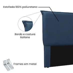 A Cabeceira Veneza tem o seu conceito artístico minimalista de que menos é mais! Fabricada com materiais de alto nível, sua costura e borda Italiana que fazem a diferença e entrega muita classe no produto. Perfeita para quem prefere aquela peça mais discreta, porém entregando delicadeza e elegância. FICHA TÉCNICA: Características: Material da Estrutura: Madeira Densidade da Espuma: D-23 Revestimento: Veludo Possui Pés: Não Possui Frame: Sim Ambiente Principal: Quarto Adulto, Quarto Solteiro, Quarto Casal Sistema de Montagem: Frames e Parafusos Possui Manual de Montagem: Sim Itens Inclusos: - 1 Cabeceira, e acessórios de montagem. Produto Montado: Não Altura dos Pés: 1 cm Altura Máxima dos Pés: 1.0000 Ambiente Principal: Quarto Cabeceira Estofada: Sim codigo_ean: 7909903113509 Complexidade da Montagem: Baixa: pode ser montado por uma pessoa sozinha Cor: Azul Marinho Cor do Produto: Azul Marinho Escala de Brilho: Fosco Extensível: Não Fixação Box: Sim Fixação na Parede: Não Itens Inclusos: 1 Cabeceira, Kit Ferragens e Manual de Montagem Largura do Colchão Indicado: 195cm Manual de Montagem e Instalação: https://product-hub-prd.madeiramadeira.com.br/738351/documents/ef88c698-5fc1-426c-8957-4291ad7bc6ba69777963153manualcabeceira.pdf Material dos Pés: Plástico Material Principal: Madeira Maciça Necessita Montagem: Não Origem do Produto: Nacional Peso: 12,1 kg Possui Mesa de Cabeceira: Não Possui Pés: 02 Possui Rodízio: Não Possui Recomendações de Uso, Manutenção e Limpeza: Limpeza: Utilize pano levemente úmido Sapatas Niveladoras: Sim Tipo de Colchão: King Tipo de Madeira Maciça: Eucalipto