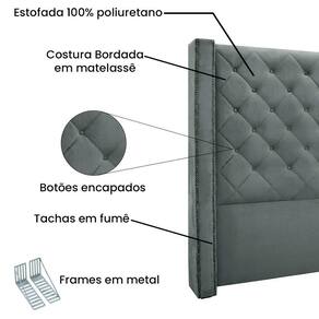 Cabeceira King 1,95m Vicenza Veludo - Pallazio Cor Cinza Chumbo