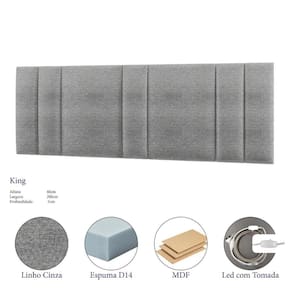 Material: MDF | Cor: Linho Cinza | Cabeceira Altura x Largura x Profundidade: 60x200x4 | Material da Cabeceira: MDF/Espuma | Cômodo Indicado: Quarto | Cabeceira Estofada: Sim | Qualidade da Espuma: D14 | Possui Led: Sim | Instruções/Cuidados: Com uma escova de cerdas macias, esfregue levemente o estofado para que o produto penetre bem. Depois, passe um pano úmido para retirar o excesso e, por fim, um pano seco para ajudar a secar. | Indicado para qual tamanho de Cama: King | Material para Filtro: MDF | Quantidade de Volumes: 1 | Peso Bruto: 9.8000000000000007 | Altura do Produto (cm): 60 | Largura do Produto (cm): 200 | Comprimento do Produto (cm): 4 | Nome do Simples no Fornecedor: Cabeceira King Led | Produto precisa de Montagem?: Sim | do Fabricante: 3 Meses Cor: Linho Cinza