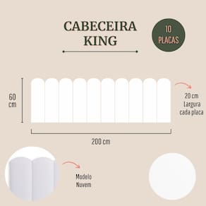 CONFIRA ABAIXO MAIS DETALHES SOBRE O PRODUTO: Tamanho King (10 placas): 200cm (comprimento total) x 60cm (altura) x 3 cm (profundidade). Altura de cada placa: 60 cm Largura de cada placa: 20cm Materiais: 100% MDF; Espuma; Fita 3M; Cores e Tecidos: temos 25 variações de cores e tecidos. Escolha a que você mais gosta.
