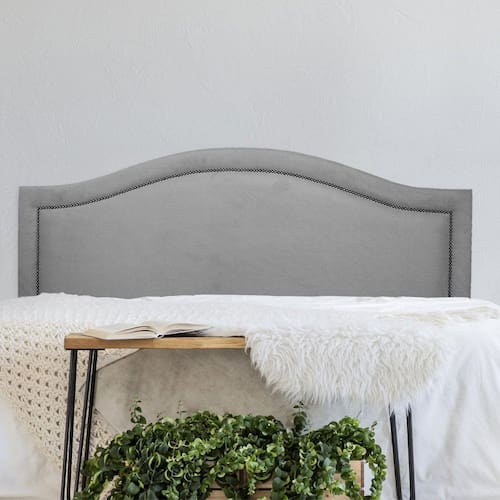 Cabeceira King Estofada para Cama Box Curva Luxo com Tachas 193x60cm Cinza/Fumê