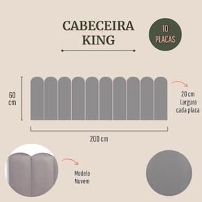 Cabeceira King Kit 10 Placas Modelo Nuvem - Suede Cinza