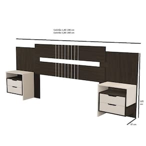 O melhor desse produto e sua facilidade pois pode ser usada para colchão box 1,38 e 1,58. Isso com toda certeza faz o produto ser muito util, pois em uma enventual troca de colchão é so ajustar a largura. Produto Montado: Sim Acabamento da Mesa de Cabeceira: Pintura Ambiente Principal: Quarto Cabeceira Estofada: Não codigo_ean: 7909903586167 Complexidade da Montagem: Baixa: pode ser montado por uma pessoa sozinha Cor: Chocolate / Off White Cor do Produto: Chocolate / Off White Escala de Brilho: Brilhante Escala de Brilho da Mesa de Cabeceira: Brilhante Extensível: Sim Fixação Box: Não Fixação na Parede: Não Itens Inclusos: 1 Cabeceira, Kit Ferragem e Manual de Montagem Largura Máxima: 260 cm Largura Mínima: 240 cm Manual de Montagem e Instalação: https://product-hub-prd.madeiramadeira.com.br/878865/documents/26bb11f4-9fd5-48ee-ab18-ccf0bc0529c41656378cabeceiracasalluiza.pdf Material da Mesa de Cabeceira: MDF Material Principal: MDF Necessita Montagem: Sim Origem do Produto: Nacional Peso: 56,5 kg Possui Mesa de Cabeceira: 02 Possui Pés: Não Recomendações de Uso, Manutenção e Limpeza: Utilizar um pano úmido e outro seco para limpeza Sistema de Montagem: baixa Tipo de Colchão: Casal/Queen