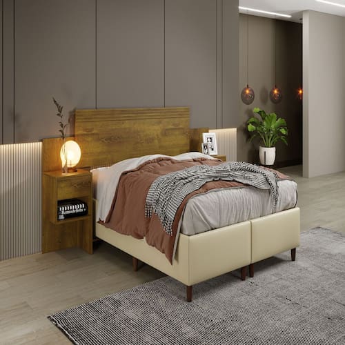 A Cabeceira Master Não Precisa Ser Parafusada na Parede, Possui 02 Mesas de Cabeceiras Fixos Com 01 Gaveta Cada e 01 Prateleira, Podendo Ser Usada para Colocar Objetos de Decoração e Armazenar Objetos. Proporcionando Mais Beleza e Conforto para o Quarto. Extensiva para Colchão 140/160 Cm.