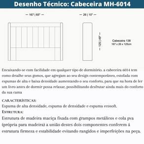 Cabeceira Mh-6014 Herval Estofado Casal Colchão 158 Cm Estrutura Madeira Maciça Estofado Marrom C1 A cabeceira MH-6014 tem como detalhe seus gomos que agregam ao seu design contemporâneo, estofada com espuma de alta e baixa densidade aumentando o seu conforto, para que na hora de ler um livro antes de dormir possa relaxar, possibilitando desfrutar ainda mais do conforto de sua cama. A cabeceira MH-6014 é ideal para trazer mais sofisticação para o quarto, tem design moderno e um acabamento detalhado, produto de grande qualidade que contribui e valoriza ainda mais o ambiente. A linha de móveis da Herval é toda fabricada seguindo o certificado FSC, garantindo que seus produtos são ecologicamente corretos.