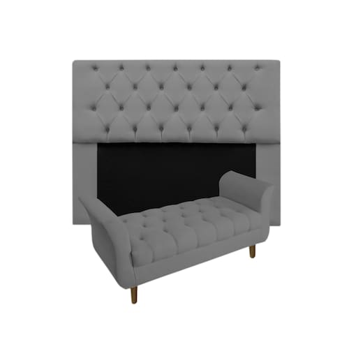 Cabeceira Mirage + Recamier Grécia Com Capitonê Casal 140 cm Suede Cinza - LM DECOR
