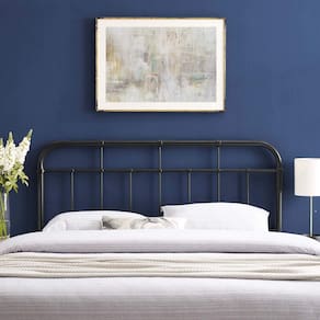 - Cabeceira dupla versátil – Crie um pano de fundo neutro para estilos de cama de todos os tipos com esta cabeceira de metal. O design contemporâneo complementa decorações modernas, de fazendas, industriais e rústicas
