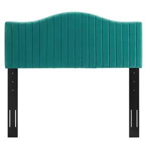 MDFModway Cabeceira dupla de veludo Brielle Channel Tufted Performance em azul-petróleo