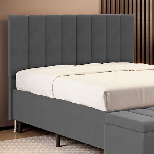 A Cabeceira Nashira foi inspirada para você, que busca conforto e elegância. Possui um design único e detalhes que dão um toque de sofisticação e um ótimo acabamento, tudo isso com ótimo custo benefício. Possui dois pés de 12 cm e fixação via frames para a sustentação do box, não sendo necessário furar a sua cama, apenas encaixa-la nos suportes da cabeceira. Adquira já!