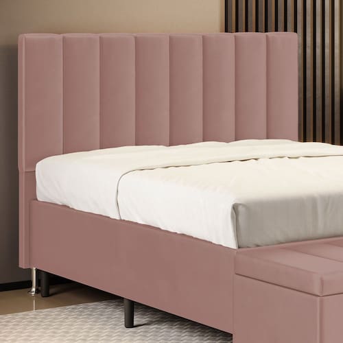A Cabeceira Nashira foi inspirada para você, que busca conforto e elegância. Possui um design único e detalhes que dão um toque de sofisticação e um ótimo acabamento, tudo isso com ótimo custo benefício. Possui dois pés de 12 cm e fixação via frames para a sustentação do box, não sendo necessário furar a sua cama, apenas encaixa-la nos suportes da cabeceira. Adquira já!