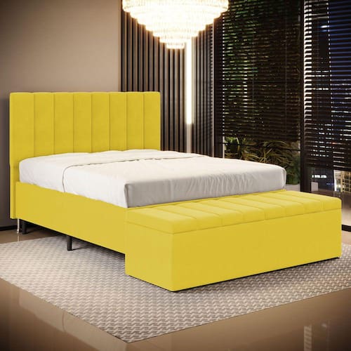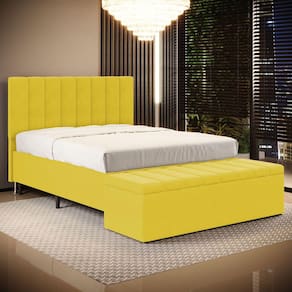 O Kit Cabeceira Nashira e Calçadeira Navi foi inspirada para você, que busca conforto e elegância. Possui um design único e detalhes que dão um toque de sofisticação e um ótimo acabamento, tudo isso com ótimo custo benefício. Possui dois pés de 12 cm e fixação via frames para a sustentação do box, não sendo necessário furar a sua cama, apenas encaixa-la nos suportes da cabeceira. A Calçadeira possui uma ótima capacidade de armazenamento interno, podendo armazenar cobertores, almofadas, entre outros. Adquira já!Dimensões do CabeceiraLargura: 160 cmAltura: 127 cmProfundidade: 10 cmPeso: 20 KgDimensões da CalçadeiraLargura: 160 cmAltura: 45 cmProfundidade: 46 cmPeso: 20 kgDimensões do Produto EmbaladoVolume 1Largura: 162 cmAltura: 129 cmProfundidade: 12 cmPeso: 22 KgVolume 2Largura: 162 cmAltura: 47 cmProfundidade: 48 cmPeso: 22 kgCaracterísticas do Produto:Madeira de eucalipto proveniente de reflorestamentoFixação com grampos galvanizadosEspuma Poliuretano D20Revestimento: SuedCor: AmareloTamanho: Queen para cama box de 158 cmPossui pés: SimTipo de pés: 2 pés PVC de 12 cm e 4 sapatasEmbalagem: plástico bolha, papelão ondulado, malha, plásticoFixação diretamente no box através de framesGarantia de 3 meses contra defeitos de fábrica.Diferenciais: - Madeira de alta qualidade- Design moderno- Material resistente- Ótimo acabamento- Estrutura reforçadaSistema de Montagem: O produto é enviado montado, sendo necessário apenas a fixação dos frames e pés.Manual de Montagem: SimVolume: 2 VolumesMontagem: Recomendamos que seja feita por um profissionalRecomendação de Limpeza: Utilize pano levemente úmidoObservações importantes- Produto para uso residencial em ambiente interno, não devendo ficar exposto diretamente ao sol, calor e umidades excessivas.- Pode haver alguma diferença de tonalidade entre a imagem e o produto real, por conta do tratamento de imagens e a calibração de cores do seu monitor.- As imagens são meramente ilustrativas, não acompanham objetos de decoração e eletrônicos.