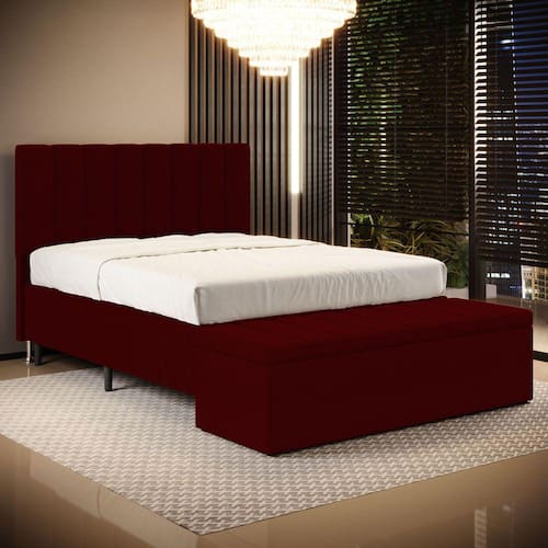 O Kit Cabeceira Nashira e Calçadeira Navi foi inspirada para você, que busca conforto e elegância. Possui um design único e detalhes que dão um toque de sofisticação e um ótimo acabamento, tudo isso com ótimo custo benefício. Possui dois pés de 12 cm e fixação via frames para a sustentação do box, não sendo necessário furar a sua cama, apenas encaixa-la nos suportes da cabeceira. A Calçadeira possui uma ótima capacidade de armazenamento interno, podendo armazenar cobertores, almofadas, entre outros. Adquira já!Dimensões do CabeceiraLargura: 195 cmAltura: 127 cmProfundidade: 10 cmPeso: 25 KgDimensões da CalçadeiraLargura: 195 cmAltura: 45 cmProfundidade: 46 cmPeso: 25 kgDimensões do Produto EmbaladoVolume 1Largura: 197 cmAltura: 129 cmProfundidade: 12 cmPeso: 27 KgVolume 2Largura: 197 cmAltura: 47 cmProfundidade: 48 cmPeso: 27 kgCaracterísticas do Produto:Madeira de eucalipto proveniente de reflorestamentoFixação com grampos galvanizadosEspuma Poliuretano D20Revestimento: SuedCor: BordôTamanho: King para cama box de 193 cmPossui pés: SimTipo de pés: 2 pés PVC de 12 cm e 4 sapatasEmbalagem: plástico bolha, papelão ondulado, malha, plásticoFixação diretamente no box através de framesGarantia de 3 meses contra defeitos de fábrica.Diferenciais: - Madeira de alta qualidade- Design moderno- Material resistente- Ótimo acabamento- Estrutura reforçadaSistema de Montagem: O produto é enviado montado, sendo necessário apenas a fixação dos frames e pés.Manual de Montagem: SimVolume: 2 VolumesMontagem: Recomendamos que seja feita por um profissionalRecomendação de Limpeza: Utilize pano levemente úmidoObservações importantes- Produto para uso residencial em ambiente interno, não devendo ficar exposto diretamente ao sol, calor e umidades excessivas.- Pode haver alguma diferença de tonalidade entre a imagem e o produto real, por conta do tratamento de imagens e a calibração de cores do seu monitor.- As imagens são meramente ilustrativas, não acompanham objetos de decoração e eletrônicos.