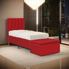O Kit Cabeceira Nashira e Calçadeira Navi foi inspirada para você, que busca conforto e elegância. Possui um design único e detalhes que dão um toque de sofisticação e um ótimo acabamento, tudo isso com ótimo custo benefício. Possui dois pés de 12 cm e fixação via frames para a sustentação do box, não sendo necessário furar a sua cama, apenas encaixa-la nos suportes da cabeceira. A Calçadeira possui uma ótima capacidade de armazenamento interno, podendo armazenar cobertores, almofadas, entre outros. Adquira já!Dimensões do CabeceiraLargura: 90 cmAltura: 127 cmProfundidade: 10 cmPeso: 10 KgDimensões da CalçadeiraLargura: 90 cmAltura: 45 cmProfundidade: 46 cmPeso: 10 kgDimensões do Produto EmbaladoVolume 1Largura: 92 cmAltura: 129 cmProfundidade: 12 cmPeso: 12 KgVolume 2Largura: 92 cmAltura: 47 cmProfundidade: 48 cmPeso: 12 kgCaracterísticas do Produto:Madeira de eucalipto proveniente de reflorestamentoFixação com grampos galvanizadosEspuma Poliuretano D20Revestimento: CouroCor: VermelhoTamanho: Solteiro para cama box de 88 cmPossui pés: SimTipo de pés: 2 pés PVC de 12 cm e 4 sapatasEmbalagem: plástico bolha, papelão ondulado, malha, plásticoFixação diretamente no box através de framesGarantia de 3 meses contra defeitos de fábrica.Diferenciais: - Madeira de alta qualidade- Design moderno- Material resistente- Ótimo acabamento- Estrutura reforçadaSistema de Montagem: O produto é enviado montado, sendo necessário apenas a fixação dos frames e pés.Manual de Montagem: SimVolume: 2 VolumesMontagem: Recomendamos que seja feita por um profissionalRecomendação de Limpeza: Utilize pano levemente úmidoObservações importantes- Produto para uso residencial em ambiente interno, não devendo ficar exposto diretamente ao sol, calor e umidades excessivas.- Pode haver alguma diferença de tonalidade entre a imagem e o produto real, por conta do tratamento de imagens e a calibração de cores do seu monitor.- As imagens são meramente ilustrativas, não acompanham objetos de decoração e eletrônicos.