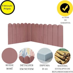 Material: Estrutura em Madeira Eucalipto com revestimento Suede de alta qualidade e espuma D–20 Conforto: Acolchoamento espesso proporcionando suporte adicional Instalação: Fixação na parede com kit de montagem incluído Instruções de Limpeza: Utilizar um pano limpo e levemente úmido Você irá receber: 01 volume