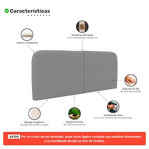 Desenvolvida com estrutura em madeira de eucalipto e espuma D-26, oferece durabilidade, conforto e leveza. Sua parte traseira conta com acabamento em TNT e já acompanha fixadores de parede, facilitando a instalação.