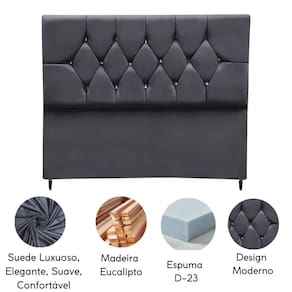 Fabricada com materiais de alta qualidade, como madeira eucalipto e revestimento em suede, esta cabeceira é durável e resistente, além disso os detalhes de costura com strass conferem um toque de sofisticação e elegância ao seu espaço.