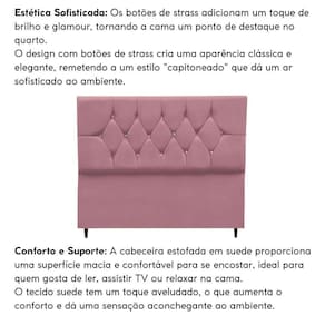 Fabricada com materiais de alta qualidade, como madeira eucalipto e revestimento em Suede, esta cabeceira é durável e resistente, garantindo não apenas estilo, mas também funcionalidade para o seu ambiente.