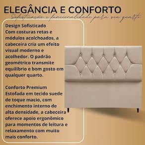 Com pés discretos que garantem sustentação e leveza visual, é perfeita para camas box e se adapta a diferentes estilos ? do clássico romântico ao contemporâneo sofisticado ? tornando-se o ponto de destaque no seu quarto.