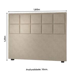 Altura: 125 cm Largura: 160 cm Profundidade: 10 cm Embalado em Papelão corrugado e plástico Estrutura em Madeira de Eucalipto de reflorestamento Colocação dos pés e Fixação no box através de engate Fixação com grampos galvanizados Espuma D12 100 Poliuretano 2 Pés em PVC de 05cm marrom -desmontados- Garantia 03 meses