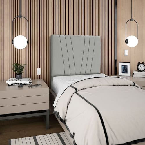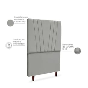 Cabeceira Para Cama Box Solteiro Carla 90cm Suede Cinza Claro