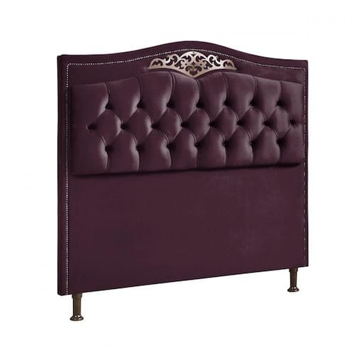 Cabeceira Para Cama De Casal Holanda 1,40 - Veludo Roxo Com lindo design retro essa linha apresenta uma serie de cabeceiras com medidas variadas e cores atuais que sao boas escolhas para quem busca e renovar a decoracao do quarto, sem deixar de lado o conforto e a praticidade. Resistente e confeccionada com materiais de alta qualidade, suas medidas sao indicadas para o uso com base box e colchao de 0,90 ate 1,95 vendidos separadamente. Combine-a com travesseiros e almofadas de sua preferencia e torne seu decor ainda mais charmoso e aconchegante. Caracteristicas do Produto Material da Estrutura: Madeira de eucalipto. Material e Densidade da Espuma: Poliuretano sem carga. Revestimento: Veludo Possui Pes: Sim Tipo de Pe: Pe de PVC de 13 cm Possui Frame: Sim Tipo de Frame: Frame de metal. #8203; Diferenciais: Espuma de alta qualidade. Design retro. Costura resistente. Montagem Facil Estrutura resistente Aplique de chapa de 3 mm decorativa Tachinha fume decorativa.